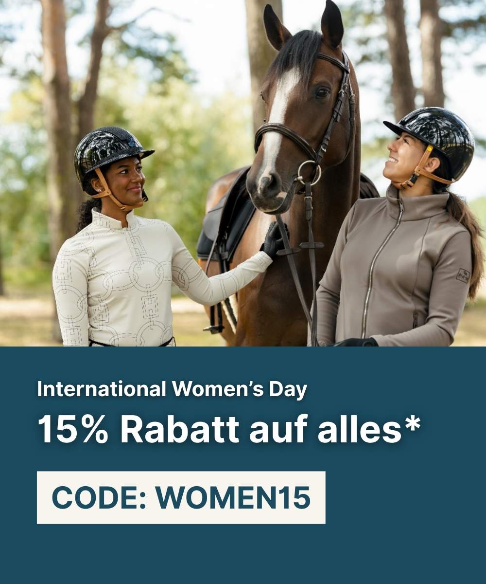 Gültig bis zum 09-03-2026. Das Aufsummieren von mehreren Gutscheinen ist ausgeschlossen. Nicht kombinierbar mit reduzierten Produkten und gilt nicht für Versandkosten. Keine Barauszahlung möglich. Folgende Marken und Produkte sind ausgeschlossen: Kentucky Horsewear, Grooming Deluxe by Kentucky, Kingsland, Pikeur, Eskadron, Racesafe, Uvex, Horseware, Schockemöhle Sports, Aesculap, Samshield, Dyon, Birth Alarm, Ariat, Freejump.