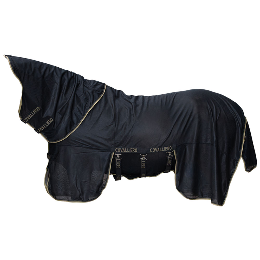 Schwarze Fliegendecke aus strapazierfähigem, engmaschigem Meshmaterial, das effektiven Schutz vor Fliegen und anderen lästigen Insekten bietet. Das Material ist atmungsaktiv mit guter Luftzirkulation und sorgt auch an wärmeren Tagen für eine angenehme Temperatur. Zudem ist es UV-beständig und bietet zusätzlichen Schutz vor der Sonne.