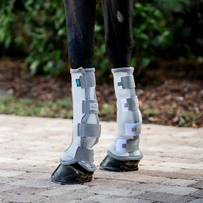 Die grauen Fly Boots von Horseware sind leichte und atmungsaktive Fliegenbeinschützer, die helfen, die Beine des Pferdes vor Fliegen, stechenden Insekten und UV-Strahlung zu schützen. Sie bestehen aus einem 3D-konstruierten Polyester-Mesh, das für eine gute Luftzirkulation sorgt und ein kühles Gefühl um die Beine bietet.