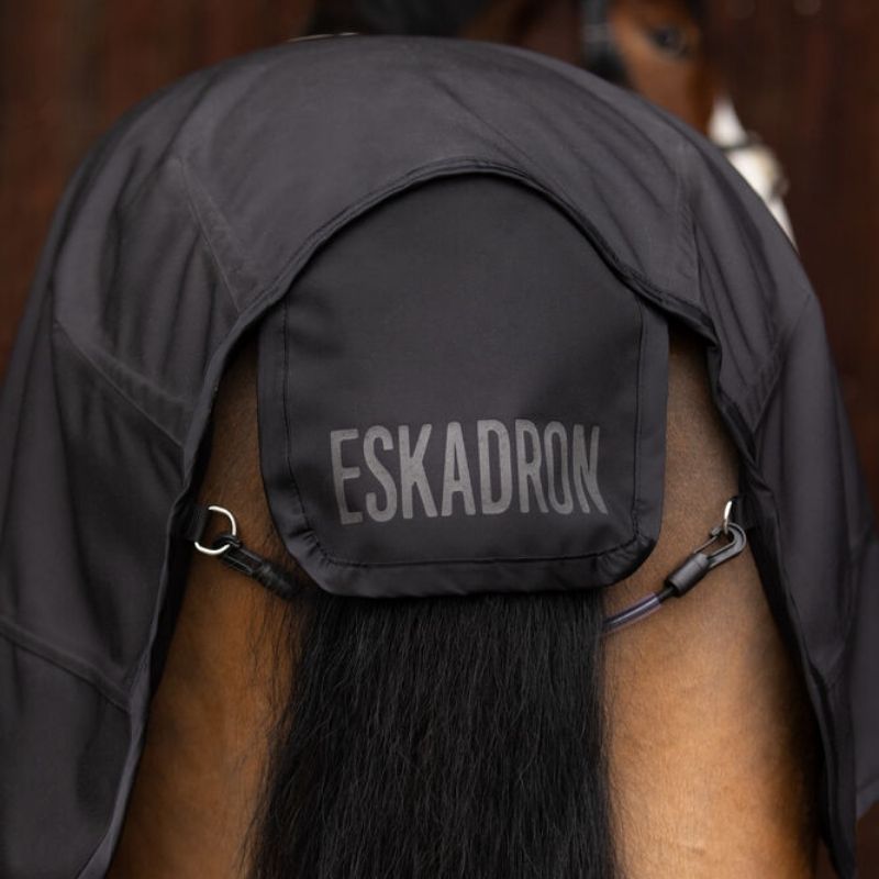 Die Eskadron Reit- und Longierdecke in Schwarz ist ein vielseitiges 2-in-1-Übungsblatt, das sowohl für das Reiten als auch für das Longieren konzipiert ist. Hergestellt aus strapazierfähigem 840 D Oxford-Gewebe, verfügt es über ein weiches Fleecefutter für zusätzlichen Komfort. Mit dem praktischen Reißverschluss können Sie die Funktionen einfach wechseln. Die Decke wird mit InnoStraps sicher am Sattel oder Longiergurt befestigt. Sie bietet eine Wassersäule von WP/3.000mm/H2O und eine Atmungsaktivität von 3000g/m2/24h, was sie sowohl wasserabweisend als auch atmungsaktiv macht. Eine große Schweifklappe und ein Schweifriemen mit PVC-Tunnel bieten zusätzlichen Schutz. Die Rückenlänge beträgt 105 cm für Größe S/M und 120 cm für Größe L/XL.