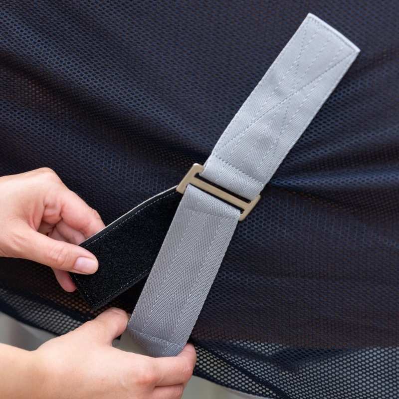 Die Fliegendecke RugBe von Covalliero bietet leichten und luftigen Schutz für Ihr Pferd, gefertigt aus marineblauem Polyester. Diese Decke bietet effektiven Schutz vor lästigen Fliegen und stechenden Insekten und ist dabei angenehm zu tragen. Das federleichte und atmungsaktive Mesh-Material sorgt für gute Luftzirkulation und schnelles Trocknen, ideal für den Einsatz im Stall oder beim Transport. Die Decke verfügt über abnehmbare Kreuzgurte für einen sicheren Sitz und flexible Nutzung sowie einen praktischen Klettverschluss vorne.