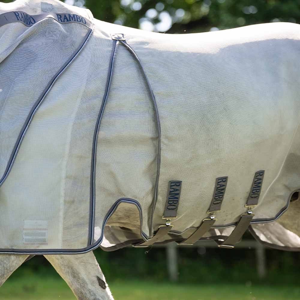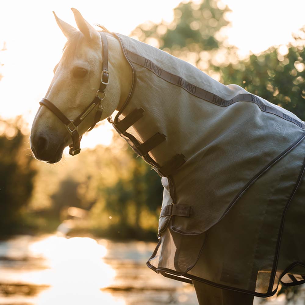 Optimo Protector Plus ist eine hochwertige Fliegendecke von Horseware, gefertigt aus einem patentierten Meshmaterial, das sowohl strapazierfähig als auch sehr atmungsaktiv ist. Das Material besitzt zudem selbstreparierende Eigenschaften, wodurch die Decke besonders langlebig im täglichen Gebrauch ist und gleichzeitig vor Fliegen, Insekten und der UV-Strahlung der Sonne schützt.