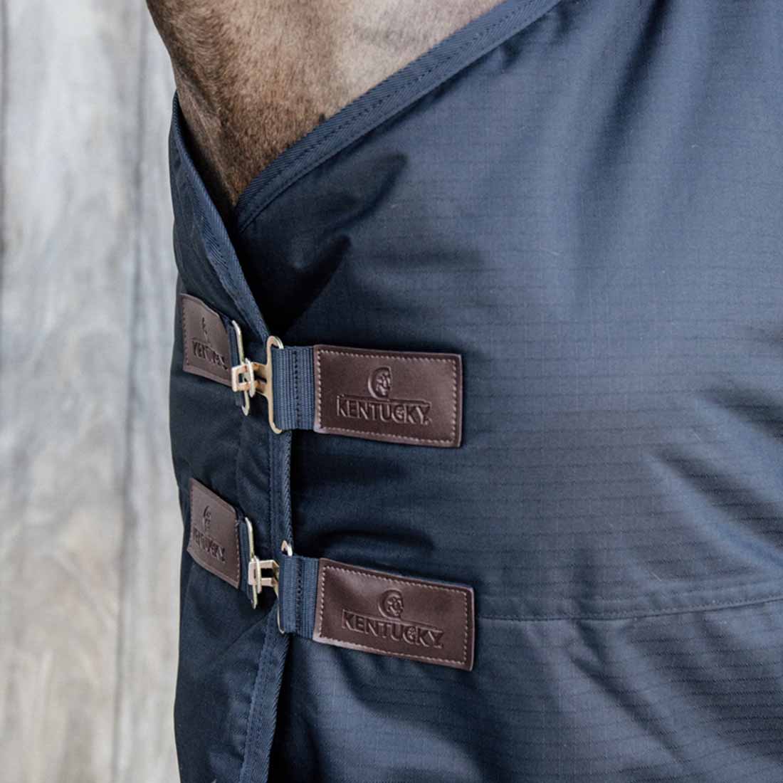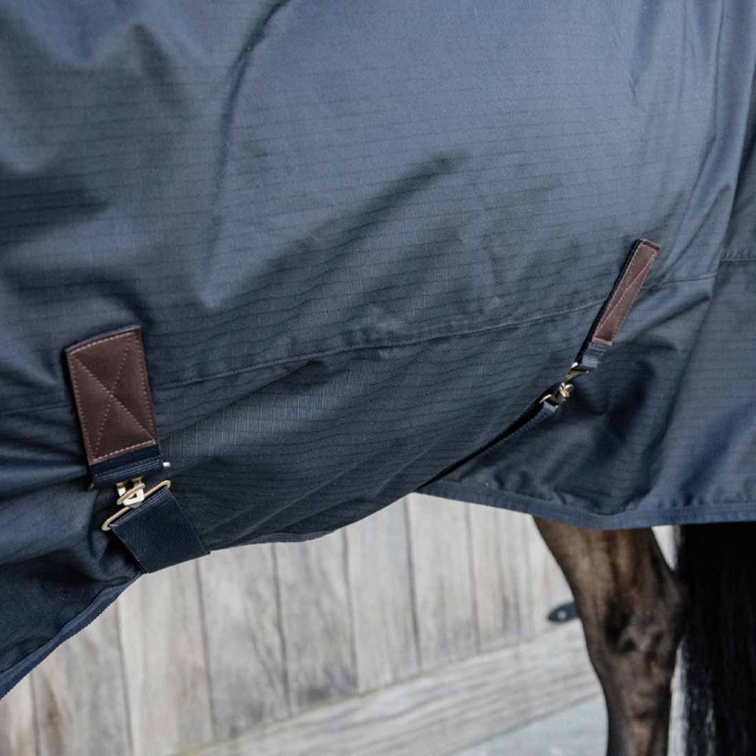 Diese Turnout Rug hat keine Naht auf dem Rücken, was das Risiko von Undichtigkeiten verringert. Für zusätzliche Wärme können Sie sie zusammen mit einer Unterdecke, wie der Unterdecke Classic, verwenden. Wenn Ihr Pferd zusätzlichen Schutz benötigt, kann ein abnehmbarer Hals separat erworben werden. Die Decke ist mit zwei Messingfrontverschlüssen aus rostfreiem Stahl, starken Klettverschlüssen, zwei Surcingles und einem abnehmbaren Schwanzriemen ausgestattet.