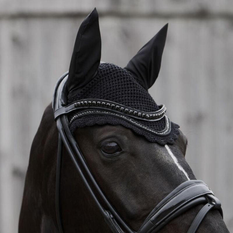Die Eskadron Crystal Haube ist ein stilvolles und praktisches Accessoire für Ihr Pferd. Sie ist gehäkelt und hat elastische Ohren, was für eine bequeme Passform sorgt. Diese schwarze Haube schützt effektiv vor Insekten im Sommer. Zudem bietet sie eine elegante Kombination aus Paspeln und funkelnden Steinen für einen luxuriösen Look.
