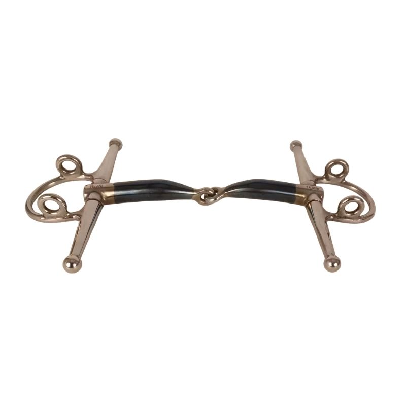 Die Fullcheek-Schenkel stabilisieren das Gebiss seitlich, helfen, die Schultern des Pferdes zu führen und verbessern die Wendungen. Die Gag-Wirkung, die über die Backenstücke durch die Ringe aktiviert wird, bietet eine sanfte Hebewirkung durch Druck auf das Genick. Dies ist besonders nützlich für Pferde, die schwer auf der Vorhand werden oder wenn zusätzliche Leichtigkeit in der Hand gewünscht wird. Das Gebiss hat eine Dicke von 16mm. Nach Gebrauch mit warmem Wasser abspülen und gründlich trocknen. Mit der Zeit entwickelt Sweet Iron eine natürliche Patina, die Geschmack und Akzeptanz verbessert. Trocken lagern und die Oberfläche regelmäßig überprüfen.