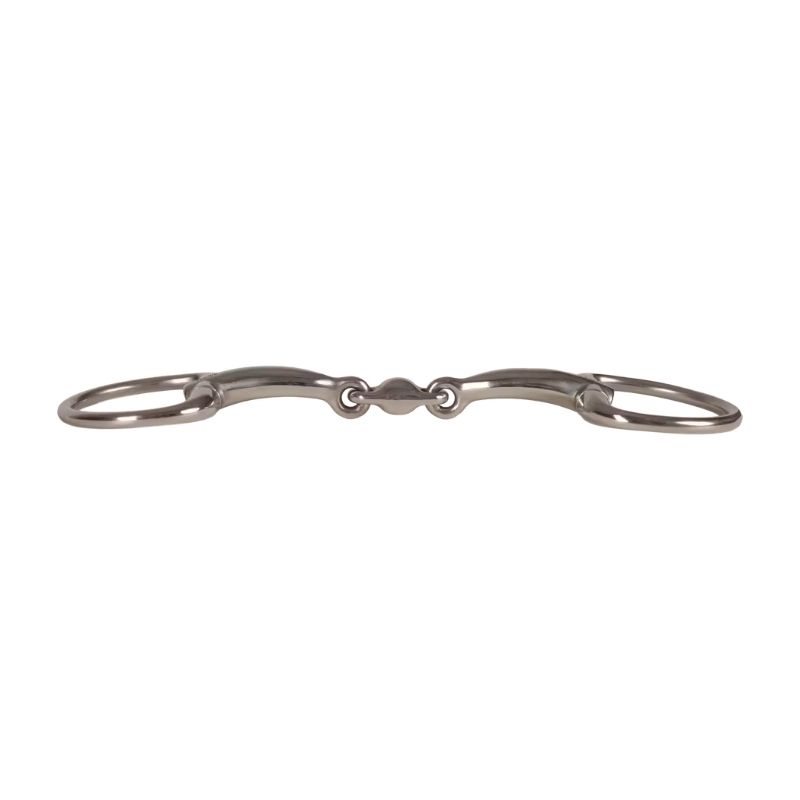 Dieses Gebiss ist ideal für Pferde, die einen einfachen und stabilen Kontakt bevorzugen. Das Mundstück aus rostfreiem Stahl bietet einen neutralen Geschmack. Nach Gebrauch mit warmem Wasser abspülen und gründlich trocknen. An einem trockenen Ort aufbewahren und regelmäßig auf Verschleiß prüfen.