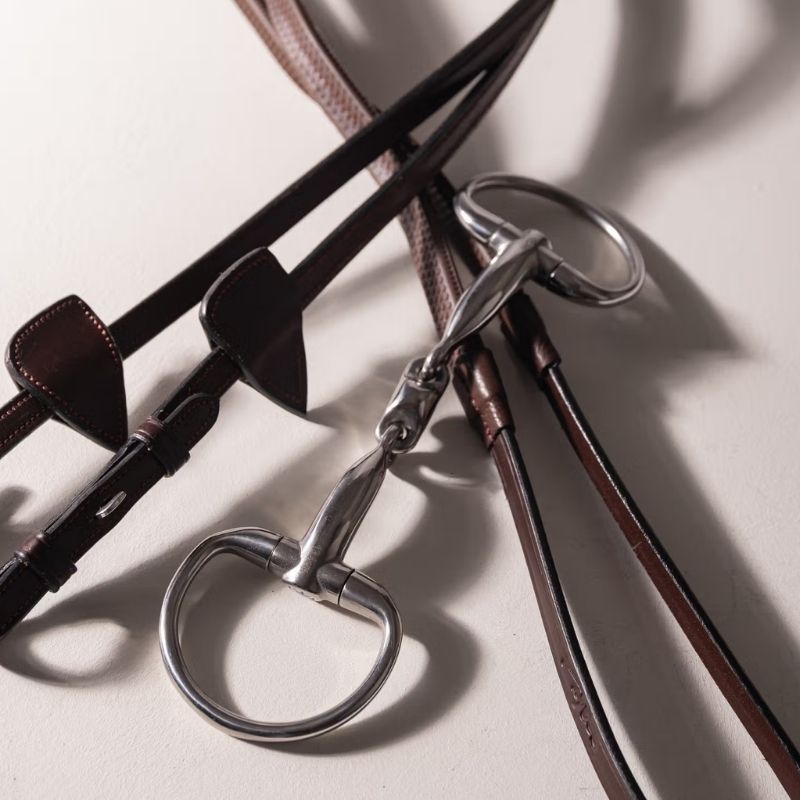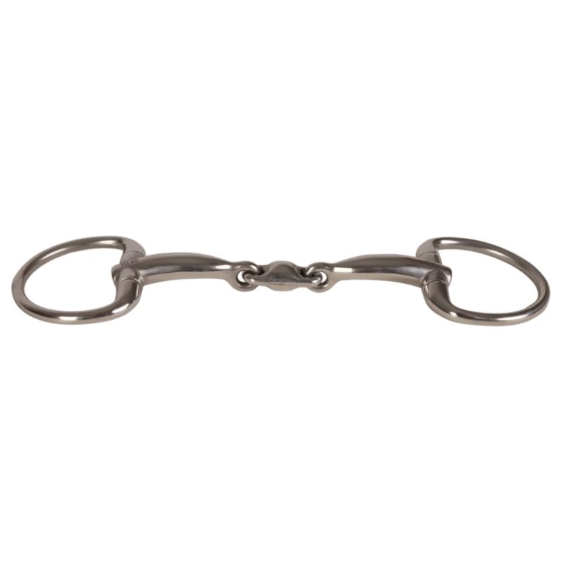 Das Olivenkopf Doppelt gebrochenes Gebiss von VELARI aus rostfreiem Stahl ist so konzipiert, dass es eine gleichmäßige Druckverteilung und einen stabilen Kontakt mit dem Pferd bietet. Das doppelt gebrochene Mundstück reduziert den Nussknackereffekt und verteilt den Druck gleichmäßig über Zunge und Laden, was ein weiches und ansprechendes Gefühl vermittelt. Dieses Gebiss ist besonders geeignet für Pferde mit einem niedrigeren Gaumen oder solche, die empfindlich auf Druck von einfach gebrochenen Gebissen reagieren. Die festen Olivenkopfringe halten das Gebiss stabil und verringern das Risiko von Kneifen, was stabile und zuverlässige Zügelhilfen bietet. Nach Gebrauch mit warmem Wasser abspülen und gründlich trocknen. Trocken lagern und regelmäßig auf Verschleiß prüfen.