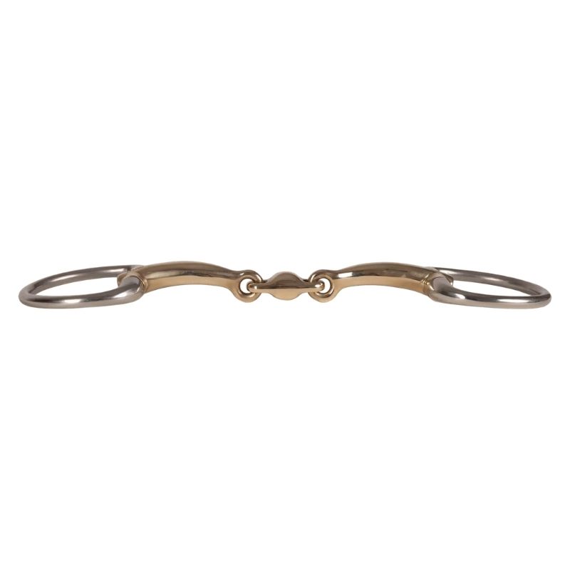 Das VELARI Olivenkopf Doppelt gebrochenes Sweet Copper 16mm Gebiss bietet eine gleichmäßige Druckverteilung und fördert die Entspannung bei empfindlichen Pferden. Das Sweet Copper Mundstück hat einen natürlich süßen Geschmack, der die Speichelproduktion anregt und dem Pferd hilft, weich und akzeptierend im Kontakt zu bleiben. Die festen Ringe sorgen für Stabilität und gleichmäßige Zügelhilfen, reduzieren seitliche Bewegungen und das Risiko von Kneifen. Diese Konstruktion ist besonders geeignet für Pferde mit einem niedrigen Gaumen und solche, die empfindlich auf Druck von einfach gebrochenen Gebissen reagieren. Das Gebiss hat eine Dicke von 16 mm und sollte nach Gebrauch in warmem Wasser gespült und gründlich getrocknet werden. An einem trockenen Ort aufbewahren und regelmäßig auf Abnutzung überprüfen.