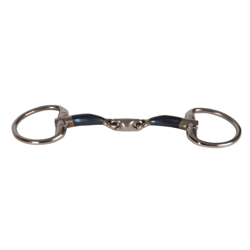 Das VELARI Olivenkopf Doppelt gebrochenes Gebiss ist so konzipiert, dass es eine gleichmäßige Druckverteilung und einen stabilen Kontakt im Pferdemaul bietet. Das doppelt gebrochene Mundstück reduziert den Nussknackereffekt und verteilt den Druck gleichmäßig über Zunge und Laden, was zu einem weichen und reaktionsfreudigen Gefühl führt. Hergestellt aus Sweet Iron, oxidiert das Gebiss natürlich, um die Speichelproduktion zu fördern, was dem Pferd hilft, weich und annehmend im Kontakt zu bleiben. Die festen Olivenkopfringe bieten Stabilität, reduzieren seitliche Bewegungen und das Risiko von Kneifen und sorgen für zuverlässige Zügelhilfen. Dieses Gebiss ist besonders geeignet für Pferde mit einem niedrigeren Gaumen und solche, die empfindlich auf Druck von einfach gebrochenen Gebissen reagieren. Erhältlich in 14 mm Dicke.