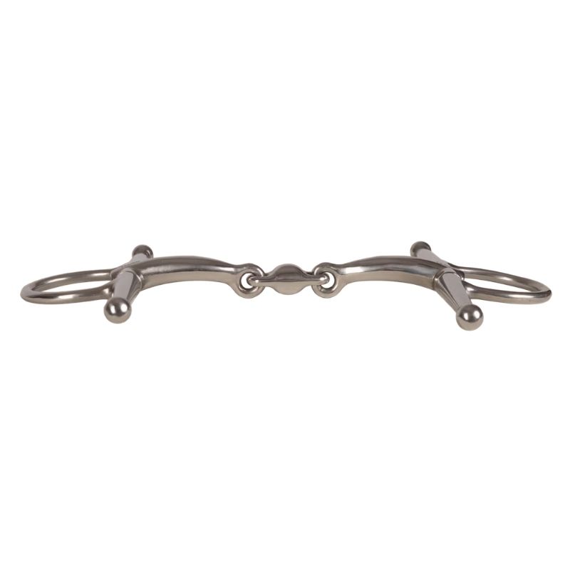 Das VELARI Fullcheek Gebiss mit doppelt gebrochener Mundstück ist aus rostfreiem Stahl gefertigt und sorgt für eine gleichmäßige Druckverteilung und stabilen Kontakt. Das Fullcheek-Design bietet klaren seitlichen Halt und hilft Pferden, Zügelhilfen zu verstehen, was es besonders für jüngere oder weniger erfahrene Pferde geeignet macht. Das doppelt gebrochene Mundstück reduziert den Nussknackereffekt und verteilt den Druck gleichmäßig auf Zunge und Laden, was zu einem weichen und reaktionsfreudigen Gefühl führt. Diese Konstruktion ist ideal für Pferde mit einem niedrigeren Gaumen und solche, die empfindlich auf Druck von einfach gebrochenen Gebissen reagieren. Das Mundstück aus rostfreiem Stahl bietet einen neutralen Geschmack, was es für Pferde geeignet macht, die einen einfachen und stabilen Kontakt bevorzugen.