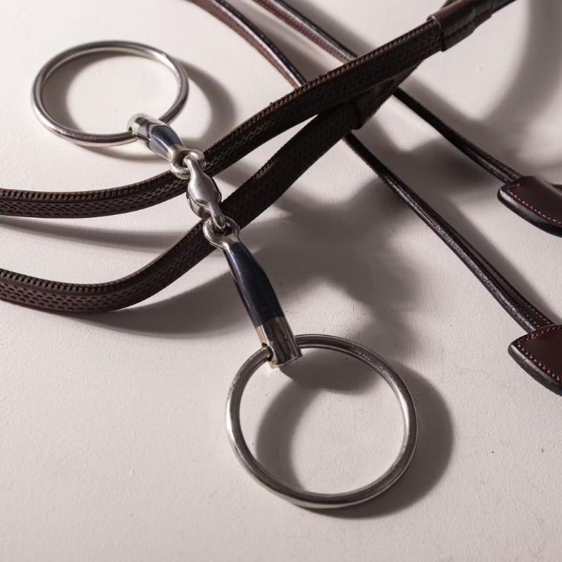 Die losen Ringe erhöhen die Beweglichkeit des Gebisses, fördern sanfte Kauaktivitäten und helfen dem Pferd, weich und aufmerksam zu bleiben. Dies ermöglicht präzise Zügelhilfen und einen elastischen Kontakt während des gesamten Ritts. Spülen Sie das Gebiss nach dem Gebrauch mit warmem Wasser ab und trocknen Sie es gründlich. Mit der Zeit entwickelt Sweet Iron eine leichte Patina, die den Geschmack und die Akzeptanz verbessern kann.