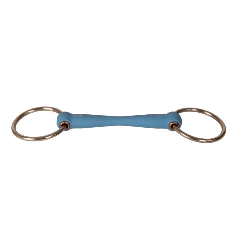 Das Flex-Trensengebiss mit losen Ringen von VELARI in Medium 20mm bietet eine stabile und ausgewogene Verbindung für Pferde, die ein klares, aber dennoch komfortables Gefühl benötigen. Dieses Gebiss ist etwas fester als die Soft-Version und bietet eine klarere Kommunikation, ohne den Komfort zu beeinträchtigen. Hergestellt aus einem ungiftigen synthetischen Material mit mittlerer Härte, bietet es klareres Feedback als die weichere Variante und behält dabei eine glatte Oberfläche. Der flexible Kern ermöglicht es dem Mundstück, den natürlichen Kieferbewegungen des Pferdes zu folgen und fördert aktives Kauen und Entspannung, ohne instabil zu wirken.