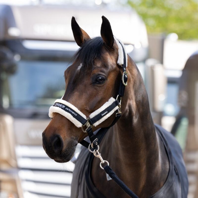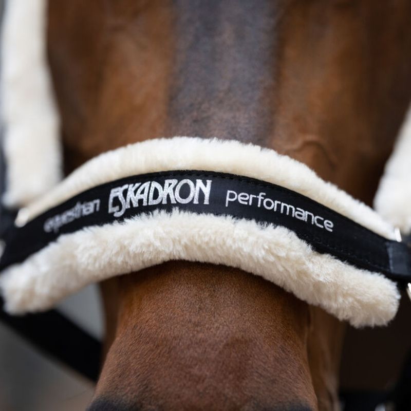 Das Eskadron Halfter Fauxfur Double Pin in Schwarz ist ein hochwertiges Halfter mit einem glänzenden Außenstoff und strapazierfähigem Gurtband auf der Innenseite. Es verfügt über doppelte Dornschließen für eine symmetrische Anpassung und ist auch unter dem Kinn verstellbar. Das Halfter ist mit pflegeleichten, abnehmbaren FauxFur-Futterungen an Nasen-, Nacken- und Backenstücken ausgestattet, die zusätzlichen Komfort für das Pferd bieten.