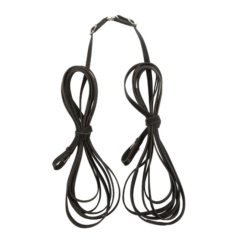 Die Lippo langzügel sind speziell für das Longieren und Fahren entwickelt. Sie bestehen aus pflanzlich gegerbtem amerikanischem Supreme-Leder, das Langlebigkeit und Qualität bietet. Diese Zügel sind in der Mitte teilbar und verfügen über einen Wirbel, was die Handhabung erleichtert. Mit einer Breite von 18 mm und einer Dicke von 3 mm bieten sie einen komfortablen und sicheren Griff. Die klassische schwarze Farbe passt zu den meisten Ausrüstungen.