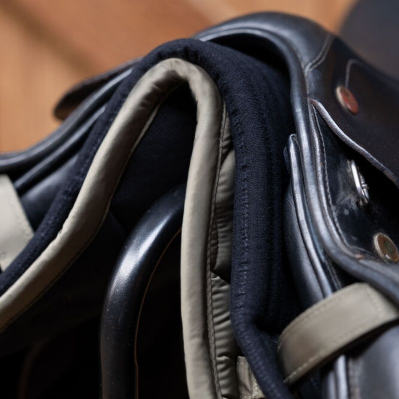 Das Eskadron Trapezpad Climatex in Schwarz wurde in Zusammenarbeit mit Sattlern, Osteopathen und Physiotherapeuten entwickelt. Dieses Pad ist darauf ausgelegt, die Entwicklung des Trapezmuskels zu fördern und die Bewegungsfreiheit des Pferdes zu verbessern. Es stabilisiert zudem den Sattel und kann entweder auf dem Schabracke oder direkt am Pferd verwendet werden.