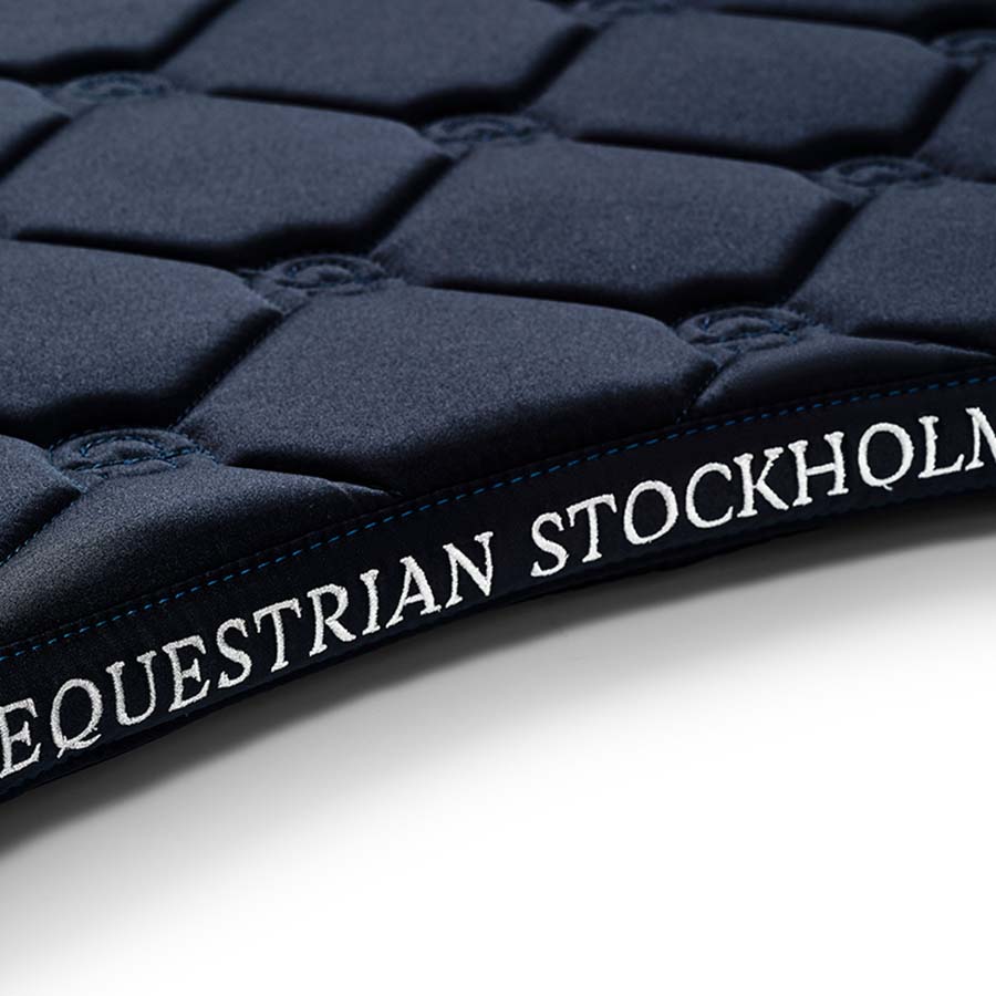Dieses dressurschabracke in marineblau ist sowohl stilvoll als auch funktional und perfekt für Trainingseinheiten. Es ist mit dem eleganten Equestrian Stockholm-Muster gesteppt und aus einem glänzenden, schmutzabweisenden Material gefertigt, das gut atmet. Dies hält Ihr Pferd während schweißtreibender Trainingseinheiten trocken. Das Schabracke ist außerdem mit einem eleganten silbernen Abzeichen von Equestrian Stockholm verziert, was einen zusätzlichen Hauch von Eleganz verleiht.