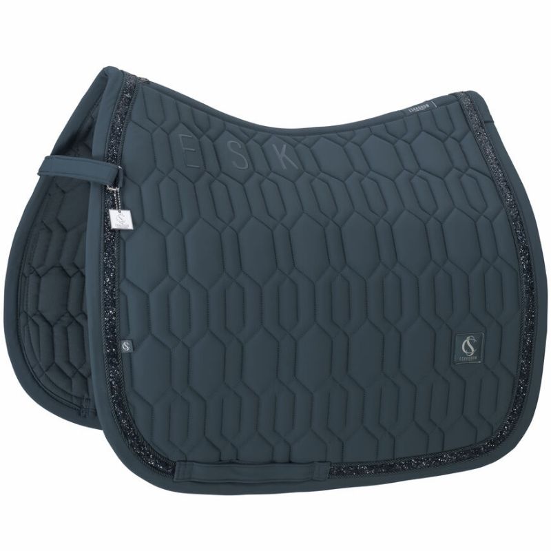 Das Eskadron Dressurschabracke Softshell Jewel Classic Sports in Grün vereint Eleganz mit Funktionalität. Die Außenseite besteht aus robustem Softshell, während die Innenseite mit einem Cool-Dry-Futter für optimalen Komfort sorgt. Die kompakte Steppung bietet ein stilvolles Design, und die Silikon-Anti-Rutsch-Oberfläche unter dem Sattel sorgt dafür, dass das Schabracke sicher an Ort und Stelle bleibt. Eine elegante Kombination aus Paspeln und Steinen mit Softshell-Kante verleiht einen Hauch von Luxus.