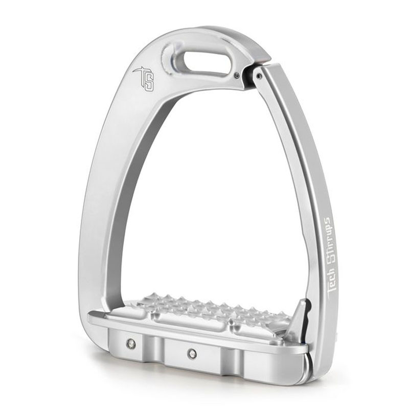 Die Sicherheitssteigbügel Venice Young EVO, in dieser silbernen Ausführung von Tech Stirrup, sind speziell für Kinder entwickelt worden. Sie sind aus hochwertigem Metall gefertigt und mit einem Sicherheitsmechanismus ausgestattet, bei dem der äußere Seitenteil durch Magnetismus zusammengehalten wird. Bei einem Sturz, wenn der Fuß gegen die Seite drückt, klappt das Teil aus und verhindert, dass der Fuß im Steigbügel stecken bleibt. Wenn der Druck nachlässt, geht das Seitenteil automatisch in seine ursprüngliche Position zurück.