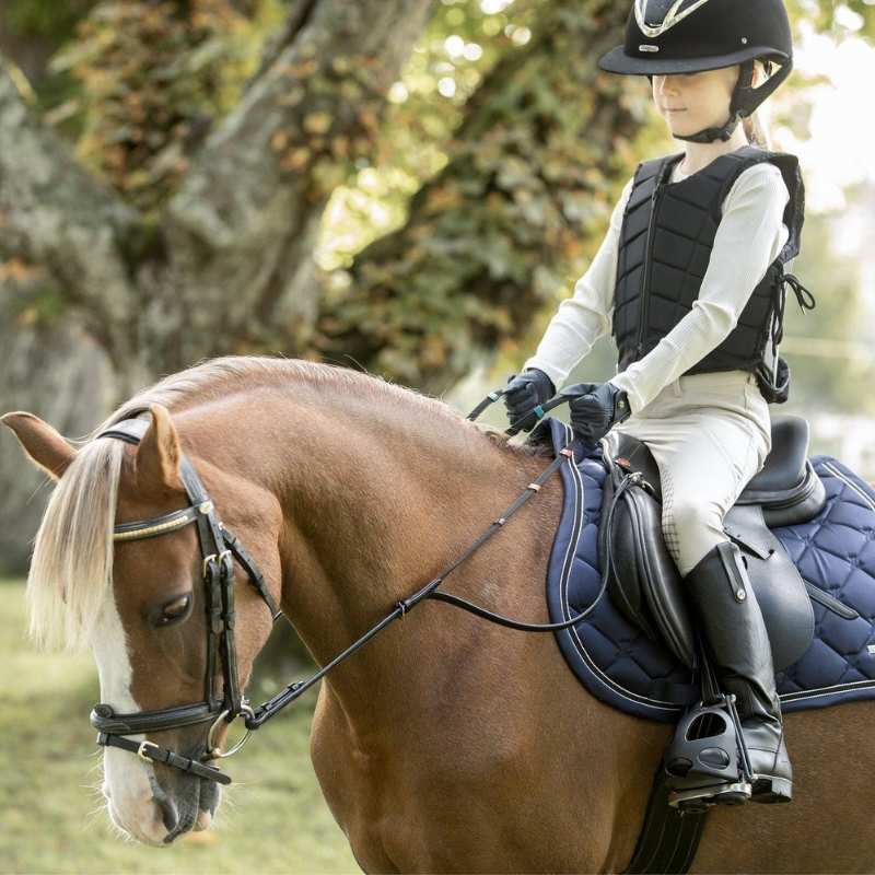 Der Lippo Molly Supergrip ist ein schwarzer Hilfszügel, der dank seiner farbigen Stopper einen gleichmäßigen und sicheren Griff bietet. Dieser clevere Zügel ist besonders nützlich für Ponys, die dazu neigen, den Kopf nach unten zu ziehen, da er dem Reiter hilft, die Zügellänge auf beiden Seiten gleich zu halten. Der Hilfszügel ist verstellbar und lässt sich einfach mit einem Karabinerhaken am D-Ring des Sattels befestigen. Er verfügt zudem über eine integrierte elastische Wiege in der Nähe der Karabinerhaken für zusätzliche Flexibilität. Der Zügel ist 12,7 mm breit.