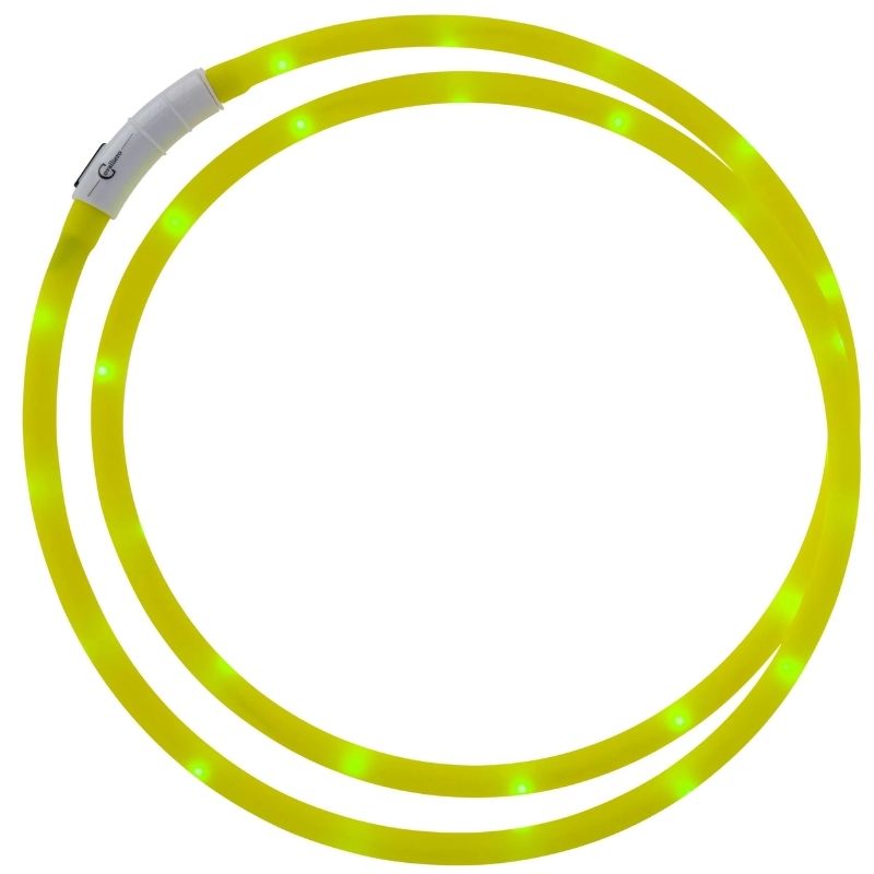 Der Covalliero Reflex LED Ring ist ein wasserdichter Halsteil mit einem gelben Band, das für optimale Sichtbarkeit bis zu 500 Metern sorgt. Die hellgrüne LED-Beleuchtung in Kombination mit dem gelben Band stellt sicher, dass das Pferd aus der Ferne deutlich sichtbar ist, was die Sicherheit beim Reiten im Dunkeln und in der Dämmerung erhöht. Der Halsteil hat eine universelle Passform und kann einfach auf die gewünschte Länge gekürzt werden, mit einem maximalen Umfang von 150 cm. Er lässt sich mit einem Knopf leicht öffnen, was das Anlegen am Pferd einfach und stressfrei macht. Der wiederaufladbare Akku wird über ein USB-C-Kabel geladen, und es stehen drei verschiedene Lichtmodi zur Auswahl – zwei blinkende und ein konstantes Licht.