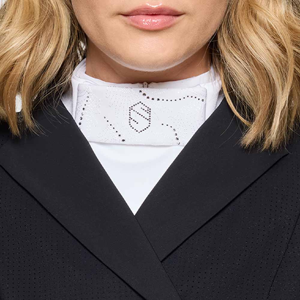 Der Samshield Crystal Leaf Ferna ist ein Plastron für den Reitsport, gefertigt aus einem elastischen, strapazierfähigen und knitterfreien Material mit hoher Atmungsaktivität. Verziert mit exklusiven Swarovski-Kristallen sowie dem Samshield-Logo.