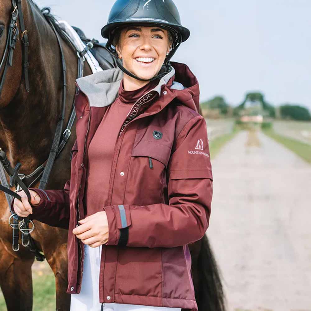 Die Mountain Horse Reitjacke Royal Grace ist eine aktualisierte Version ihrer klassischen Reitjacke, entworfen für Damen. Diese bordeauxfarbene Jacke bietet eine attraktive Passform und funktionale Merkmale, perfekt zum Reiten. Sie ist vollständig getaped, wasserdicht und atmungsaktiv, was sie ideal für alle Wetterbedingungen macht. Die Jacke verfügt über einen 2-Wege-YKK®-Hauptreißverschluss zur Anpassung, eine abnehmbare und verstellbare Kapuze für gute seitliche Sicht, verstellbare Ärmelklappen und Innenbündchen für zusätzliche Wärme, mehrere sichere Taschen und Reitschlitze am Rücken.