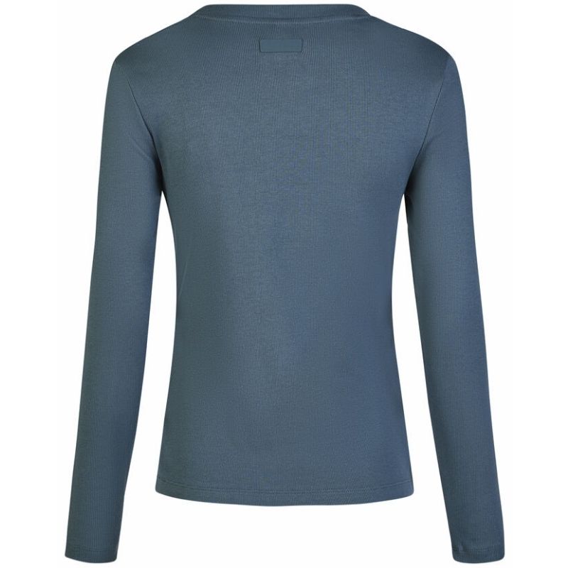 Der Eskadron Rib Longsleeve Classic Sports ist ein grüner Reittop aus gerippter Baumwolle mit rundem Halsausschnitt. Er hat eine figurbetonte Passform und ist sowohl weich als auch dehnbar, was für Komfort sorgt. Der Reittop ist mit dem Eskadron-Logo auf der Vorderseite verziert.