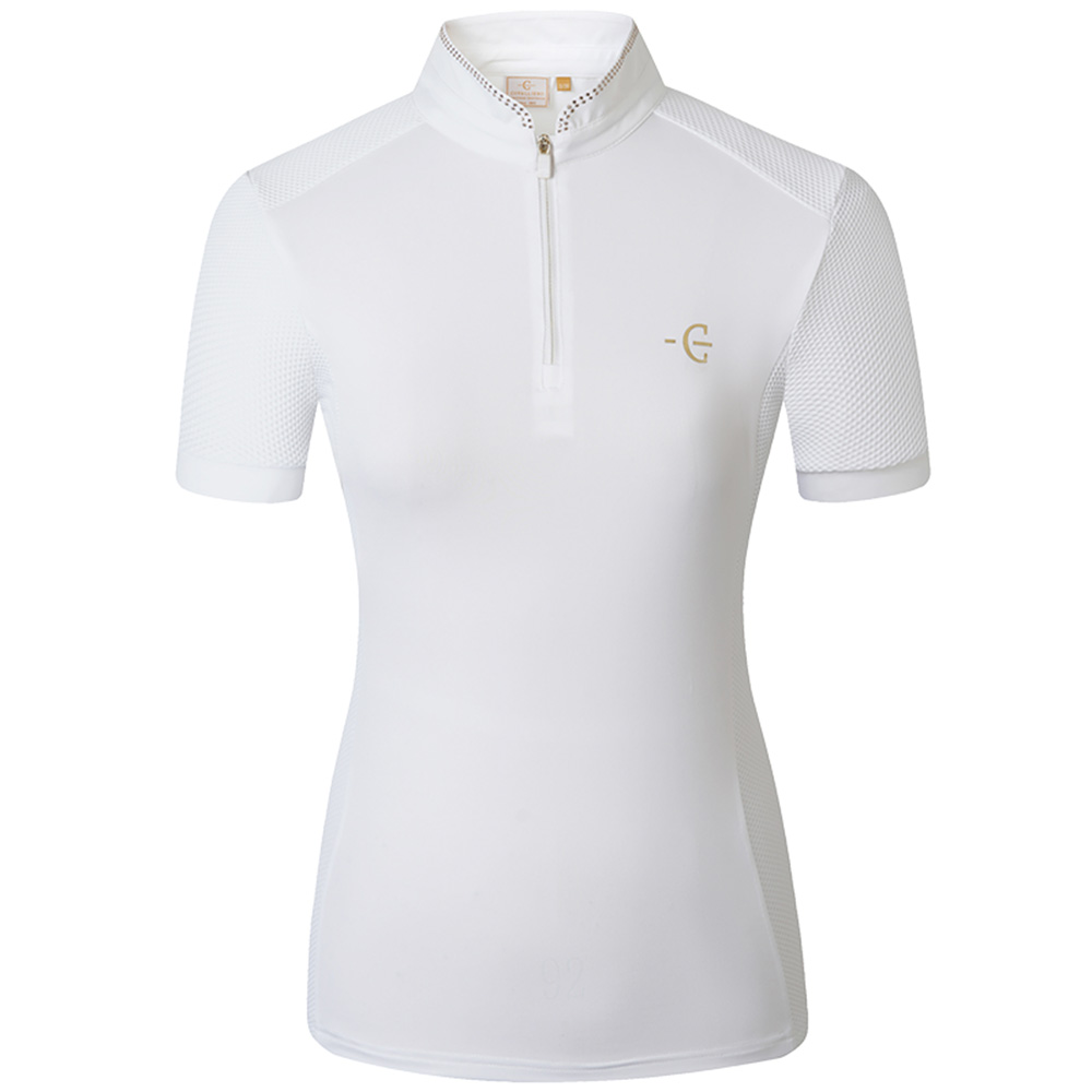 Das Covalliero Turniershirt vereint sportliche Leistung mit stilvollem Design. Das atmungsaktive, elastische Material sorgt für optimalen Komfort und maximale Bewegungsfreiheit im Sattel. Der elegante hohe Kragen mit dezentem Glitzerdetail verleiht eine elegante Note.