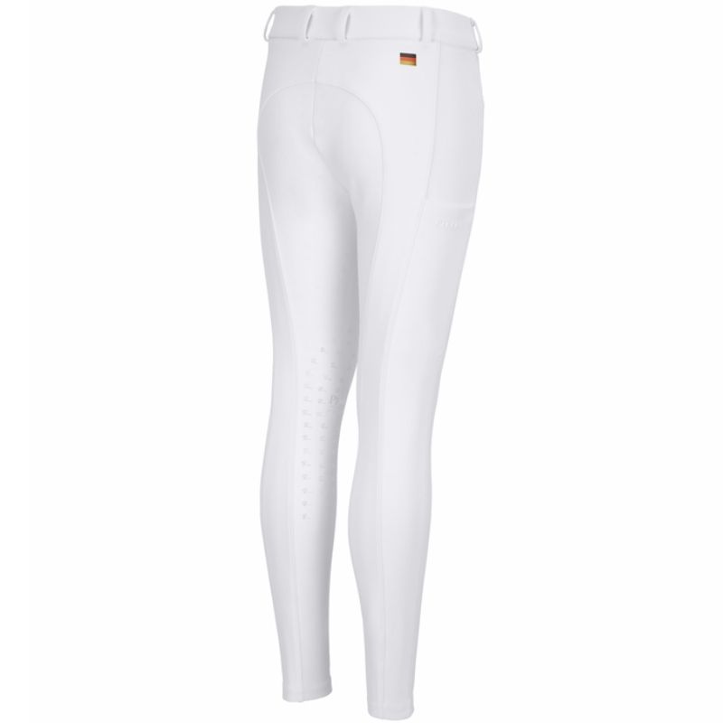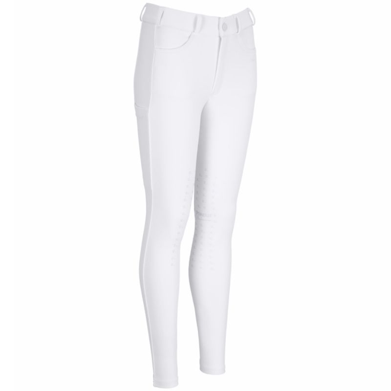 Die Pikeur New Brooklyn SD Knee Grip Reithosen für Kinder und Junioren bieten ein funktionelles Midwaist-Design für eine bequeme und stabile Passform beim Reiten. Diese weißen Reithosen sind aus dem flexiblen 492 / FlexDynamicOpaque Material mit 4-Wege-Stretch gefertigt, das hervorragende Bewegungsfreiheit und angenehme Unterstützung bietet. Das Material ist atmungsaktiv und schnelltrocknend, was auch bei längeren Reiteinheiten für hohen Komfort sorgt.