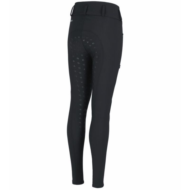 Der Vollbesatz aus GripTec sorgt für einen sicheren Halt im Sattel und ein angenehmes Tragegefühl dank der Dehnbarkeit des Materials und dem Fehlen von Knienähten. Der breite Bund aus dem gleichen Material wie die Leggings sorgt für einen stabilen Sitz und kombiniert zusammen mit Gürtelschlaufen Funktionalität mit einem klassischen Design. Große Handytaschen auf beiden Seiten sind praktisch für die Aufbewahrung kleinerer Gegenstände. Strassdetails an den Taschen und ein Strasslogo auf der Rückseite verleihen einen eleganten und modernen Abschluss.