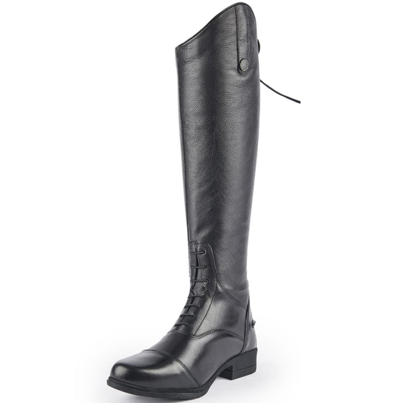 Entdecken Sie die eleganten und funktionalen Reitstiefel von Moretta, die für die moderne Reiterin entworfen wurden. Diese schwarzen Stiefel kombinieren Stil mit Komfort und sind perfekt für Training und Wettkampf. Mit einer flexiblen Schnürung und verstärktem Leder über dem Fuß und an der Innenseite des Stiefels bieten sie hervorragenden Schutz und Unterstützung. Die stoßdämpfende Anti-Rutsch-Sohle sorgt für Stabilität im Sattel, während der YKK-Reißverschluss das An- und Ausziehen erleichtert.