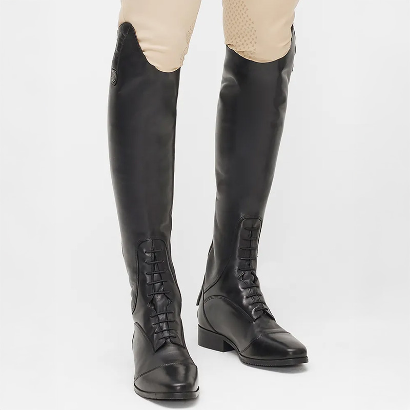 Die stoßdämpfende ShockX™ Advanced-Innensohle bietet stabilen und bequemen Halt – auch an langen Turniertagen. Hinten sorgt ein robuster YKK®-Reißverschluss für einfaches An- und Ausziehen, während eine integrierte gehärtete Stahleinlage in der Sohle (tempered steel shank) zusätzliche Stabilität im Steigbügel und beim Gehen im Stall bietet.