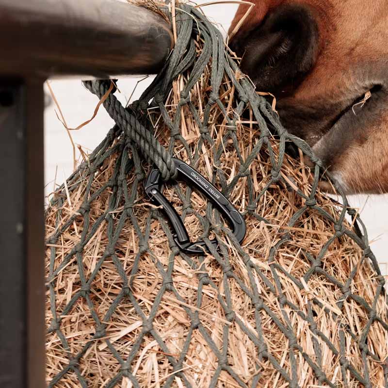 Das nahezu flache Design sorgt für einen komfortablen und sicheren Griff. Der Haken eignet sich zum Aufhängen und Organisieren von zum Beispiel Gebissen, Heunetzen und weiterer Ausrüstung.